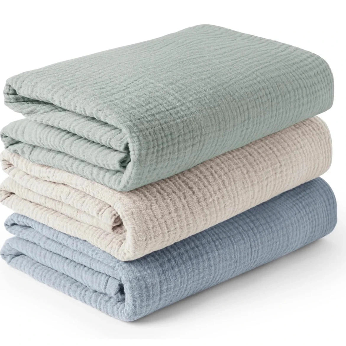 Our hand embroidered muslin swaddle blankets are made of 100% cotton, free from harmful chemicals, and gentle on the most sensitive skin. We have swaddles available in 47"x47" and 40"x40". If you need help deciding on a color combination, or would like to discuss personalization, don't hesitate to send us a message.